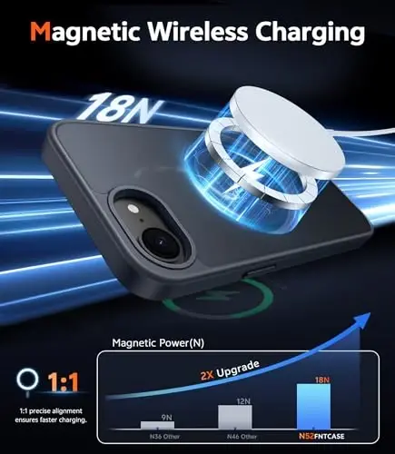 Compatibility: Only for iPhone 17e / iPhone 16e. Excellent functionality maintained by precise speaker and port cutouts and easy-press buttons Strong Magnetic Attraction: Our FNTCASE for iPhone 17e/16e case has 38 super N52 magnets built in. Its magnetic attraction reaches 2400 gf, which is almost 7X stronger than ordinary, so it won't fall off no matter how it shakes while charging Matte Texture & Excellent Touch Feel: The FNTCASE for iPhone 17E / iPhone 16E liquid silicone case uses high-grade matte TPU and PC material, with a solid color design that is refined and elegant. The frosted surface provides you with a comfortable hand feel and the nano-antioxidant layer can effectively prevent stains and scratches 14FT Military Grade Protection: Passed Military Drop Tested up to 14FT. This for iPhone 17E / iPhone 16E premium silicone case backplane is made with rigid polycarbonate and flexible shockproof TPU bumpers around the edge and features 4 built-in corner Airbags to absorb impact, which can prevent your Phone from accidental drops, bumps, and scratches Screen & Camera Raised Edges: The tiny design of 1.5 mm lips over the camera, 1.5 mm bezels over the screen, and 0.5 mm raised corner lips on the back provides extra and comprehensive protection, can minimize and reduce scratches. Packing list: FNTCASE for iPhone 17e&16e phone case and a screen protector
