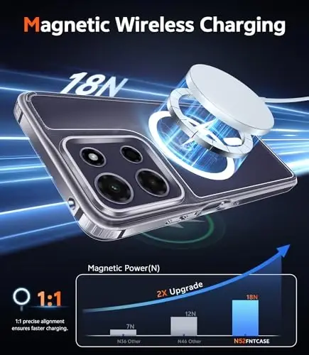 Strong Magnetic Attraction: Compatible for Magnetic chargers and other Qi Wireless chargers without signal influence. The Moto G Power 5G 2026/2025 magnetic case has built-in 38 super N52 magnets. Its magnetic attraction reaches 2400 gf Crystal Clear & Never Yellow: Using high-grade Bayer's ultra-clear TPU and PC material, allowing you to admire the original sublime beauty for Moto G Power 5G 2026/2025 while won't get oily when used. The Nano antioxidant layer effectively resists stains and sweat 10FT Military Grade Protection: Passed Military Drop Tested up to 10 FT. This Moto G Power 5G 2026/2025 clear case backplane is made with rigid polycarbonate and flexible shockproof TPU bumpers around the edge and features 4 built-in corner Airbags to absorb impact Screen & Camera Raised Edges: The tiny design of 2.5 mm lips over the camera, 1.5 mm bezels over the screen, and 0.5 mm raised corner lips on the back provides extra and comprehensive protection, can minimize and reduce scratches Compatibility & Secure Grip: This clear case is designed for Moto G Power 5G 2026 and Moto G Power 5G 2025 6.8 inch. Precise cut and design allow easy access to all ports, buttons, cameras, sensors, and other features. The clear case can totally achieve a great grip feeling
