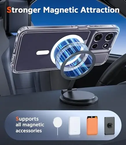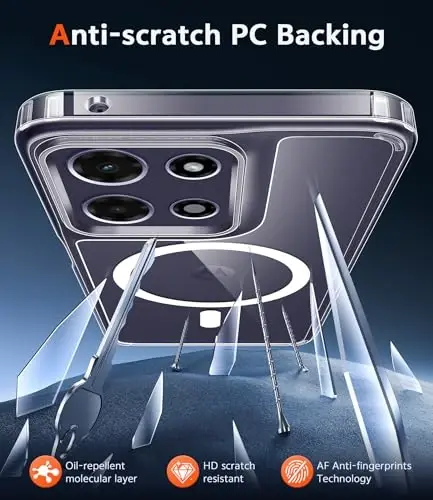 Strong Magnetic Attraction: Compatible for Magnetic chargers and other Qi Wireless chargers without signal influence. The Moto G Power 5G 2026/2025 magnetic case has built-in 38 super N52 magnets. Its magnetic attraction reaches 2400 gf Crystal Clear & Never Yellow: Using high-grade Bayer's ultra-clear TPU and PC material, allowing you to admire the original sublime beauty for Moto G Power 5G 2026/2025 while won't get oily when used. The Nano antioxidant layer effectively resists stains and sweat 10FT Military Grade Protection: Passed Military Drop Tested up to 10 FT. This Moto G Power 5G 2026/2025 clear case backplane is made with rigid polycarbonate and flexible shockproof TPU bumpers around the edge and features 4 built-in corner Airbags to absorb impact Screen & Camera Raised Edges: The tiny design of 2.5 mm lips over the camera, 1.5 mm bezels over the screen, and 0.5 mm raised corner lips on the back provides extra and comprehensive protection, can minimize and reduce scratches Compatibility & Secure Grip: This clear case is designed for Moto G Power 5G 2026 and Moto G Power 5G 2025 6.8 inch. Precise cut and design allow easy access to all ports, buttons, cameras, sensors, and other features. The clear case can totally achieve a great grip feeling