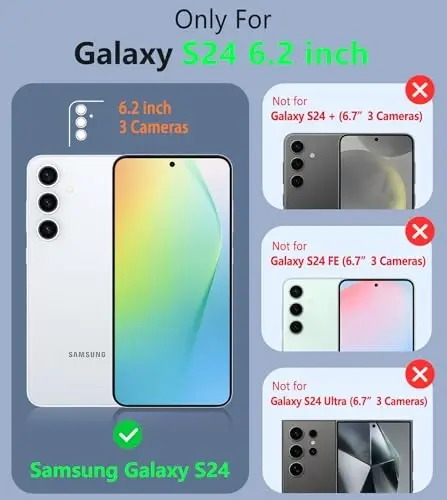 Compatibility: ONLY for Samsung Galaxy S24 5G, 6.2 inches, released in 2024. (NOT FIT S24 FE/S24 PLUS/S24 ULTRA!!!). Packages: A galaxy S24 5g protector case. Please check before purchasing Dual Layer Guard Hybrid Design: Soft TPU inner case - shock absorbing effectively. Hard PC outer back shell - improved impact resistance. Mil-Grade drop protection and reinforced corner Air Cushion Technology aim to protect your Samsung Galaxy S24 5G Non-slip Texture & Excellent Grip: The precision-engineered hexagonal cellular non-slip texture on the Samsung S24 Case back shield brings a firmer grip, and prevents your mobile phone from unexpected drops, bumps, and wear in daily use Precise Cutouts & Flexible Buttons: Raised edge protection design for screens and cameras. All holes are perfectly fit for Samsung Galaxy S24. Tactile buttons provide a crisp and distinct press. The Honeycomb design inside for heat dissipation and breathable Slim Profile & Premium Creation: Form-fitted to maintain a slim profile and is pocket-friendly. Premium materials ensure high quality and durability. This Samsung Galsxy S24 case allows your smartphone to fit easily in your pocket