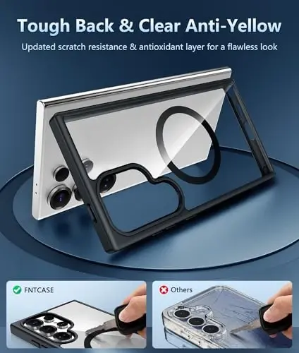 Strong Magnetic Attraction: Galaxy S25 Ultra clear magnetic case is compatible with magnetic chargers and other Qi wireless chargers without signal influence. This Samsung Galaxy S25 Ultra magnetic case has 38 built-in N52 magnets and a 2400 gf magnetic attraction Crystal Clear & Never Yellow: Made of high grade Bayer ultra-clear TPU and PC material, it will not be stained with grease when you use it. The nano antioxidant layer protects against stains and sweat. Maintaining the raw beauty of the Samsung Galaxy S25 Ultra Phone Screen & Camera Raised Edges: The tiny design of 2.5 mm lips over the camera, 1.5 mm bezels over the screen, and 0.5 mm raised corner lips on the back for increased protection and minimized scratches 10FT Military Grade Protection: Passed Military Drop Tested up to 10 FT. This Samsung Galaxy S25 Ultra clear case is made with rigid polycarbonate backplane, edge TPU bumpers and 4 corner airbags for impact absorption Compatibility & Secure Grip: This clear case is only designed for Samsung Galaxy S25 Ultra Phone (6.9 inch). Precise cutouts and designs enable each buttons function and port to fulfill its role. This transparent case has a slim design and a great grip