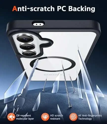 Strong Magnetic Attraction: Compatible for magnetic chargers and other Qi Wireless chargers without signal influence. The Samsung Galaxy S26 Plus magnetic case has built-in 38 super N52 magnets. Its magnetic attraction reaches 2400 gf Crystal Clear & Never Yellow: Using high-grade Bayer's Plus-clear TPU and PC material, allowing you to admire the original sublime beauty for S26 Plus while won't get oily when used. The Nano antioxidant layer effectively resists stains and sweat 10FT Military Grade Protection: Passed Military Drop Tested up to 10 FT. This S26 Plus clear case backplane is made with rigid polycarbonate and flexible shockproof TPU bumpers around the edge and features 4 built-in corner Airbags to absorb impact Raised Camera & Screen Protection: The tiny design of 2.5 mm lips over the camera, 1.5 mm bezels over the screen, and 0.5 mm raised corner lips on the back provides extra and comprehensive protection, even if the phone is dropped, can minimize and reduce scratches and bumps on the phone. Molded strictly to the original phone, all ports, lenses, and side button openings have been measured and calibrated countless times, and each button is sensitive and easily accessible Compatibility & Secure Grip: This clear case is only designed for Galaxy S26 Plus 6.7 inch. Precise cut and design allow easy access to all ports, buttons, cameras, sensors, and other features. The clear case can totally achieve a great grip feeling