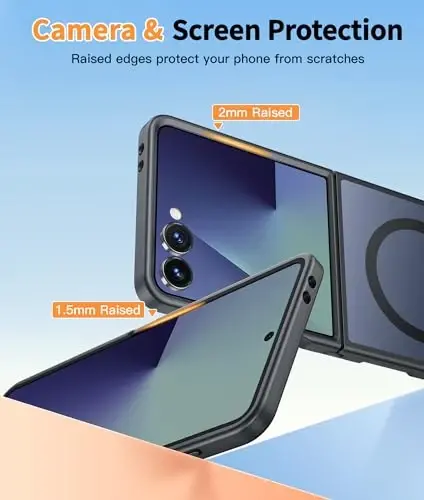 Strong Magnetic Attraction: The Samsung Galaxy magnetic case has built-in 38 super N52 magnets. Its magnetic attraction reaches 2400 gf, which is almost 7X stronger than ordinary, therefore it won't fall off no matter how it shakes when you are charging Matte Texture & Excellent Touch Feel: The Samsung Galaxy Z Flip 7 case uses high-grade matte TPU and PC translucent material, refined and elegant beauty without obscuring the logo. The frosted surface provides you with a comfortable hand feel and the nano-antioxidant layer can effectively prevent stains and scratches 10FT Military Grade Protection: Passed Military Drop Tested up to 10FT. This Samsung Galaxy Z Flip 7 case backplane is made with rigid polycarbonate and flexible shockproof TPU bumpers around the edge and features 4 built-in corner Airbags to absorb impact, which can prevent your Phone from accidental drops, bumps, and scratches Screen & Camera Raised Edges: The tiny design of 2.5 mm lips over the camera, 1.5 mm bezels over the screen, and 0.5 mm raised corner lips on the back provides extra and comprehensive protection, can minimize and reduce scratches Compatibility: Only for Samsung Galaxy Z Flip 7 Phone Case, 6.3 inches. Precise cut and design allow easy access to all ports, buttons, cameras, sensors, and other features. The case can totally achieve a great grip feeling also stay secure and clean. The ultra-thin minimalist design does not add bulk and is easy to carry