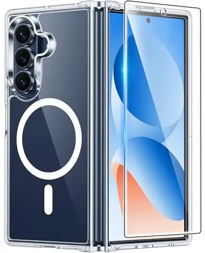 Strong Magnetic Attraction: Compatible for Magnetic chargers and other Qi Wireless chargers without signal influence. The Samsung Galaxy Z Fold 7 magnetic case has built-in 38 super N52 magnets. Its magnetic attraction reaches 2400 gf Crystal Clear & Never Yellow: Using high-grade Bayer's ultra-clear TPU and PC material, allowing you to admire the original sublime beauty for Samsung Galaxy Z Fold 7 while won't get oily when used. The Nano antioxidant layer effectively resists stains and sweat 10FT Military Grade Protection: Passed Military Drop Tested up to 10 FT. This Samsung Galaxy Z Fold 7 clear case backplane is made with rigid polycarbonate and flexible shockproof TPU bumpers around the edge and features 4 built-in corner Airbags to absorb impact Screen & Camera Raised Edges: The tiny design of 2.5 mm lips over the camera, 1.5 mm bezels over the screen, and 0.5 mm raised corner lips on the back provides extra and comprehensive protection, can minimize and reduce scratches Compatibility & Secure Grip: This clear case is only designed for (Samsung Galaxy Z Fold 7, 8.0 inch). Precise cut and design allow easy access to all ports, buttons, cameras, sensors, and other features. The clear case can totally achieve a great grip feeling