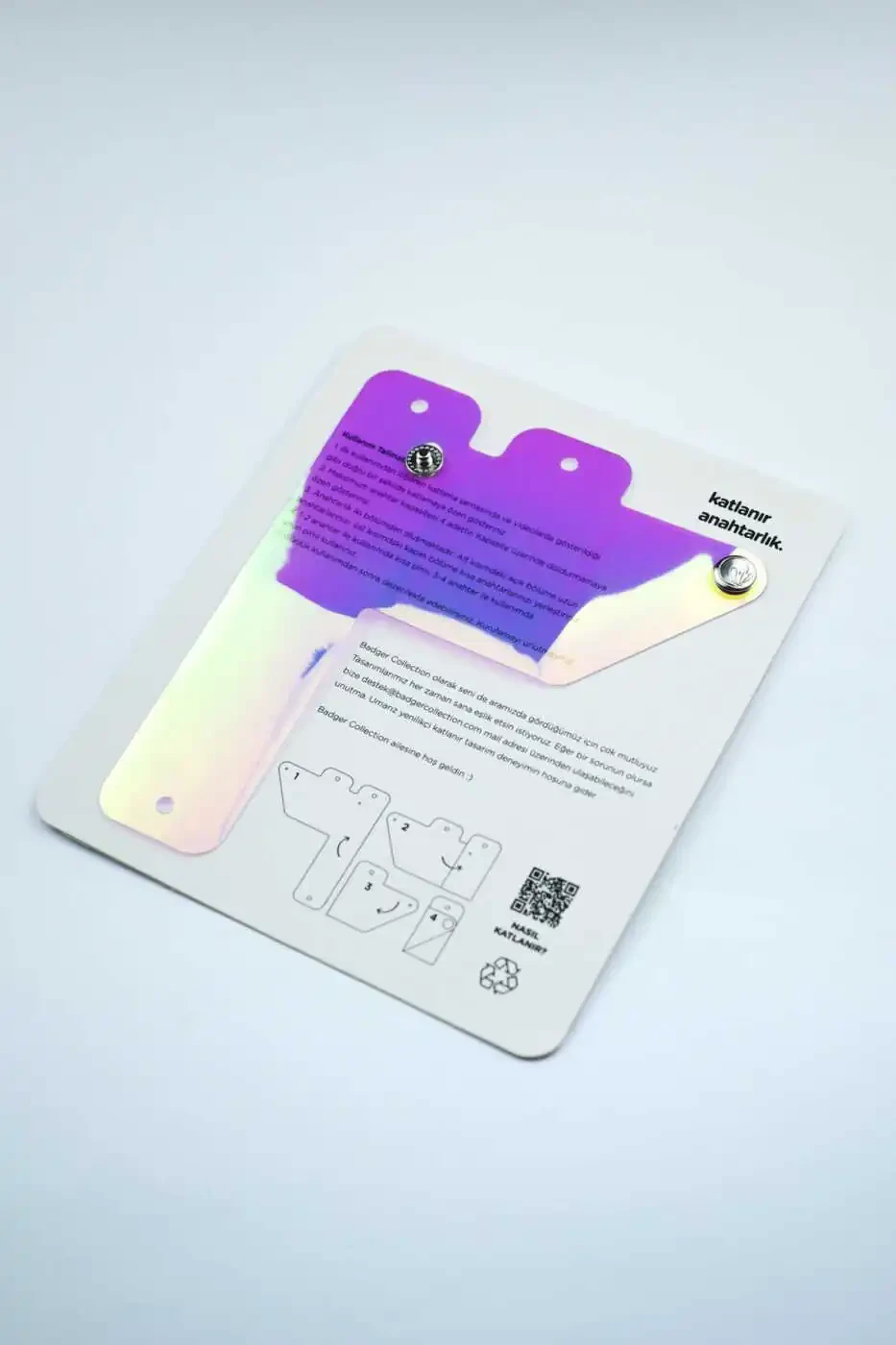 foldable keychain, hologram, keychain, gift, unisex, transparent, pvc, minimalist, colorful, design