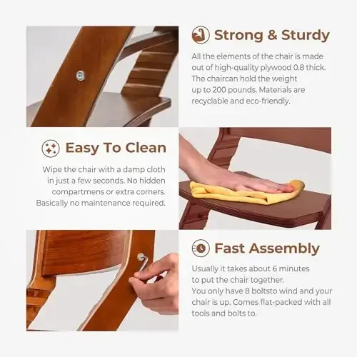 Регулируемый дизайн: этот высокий стул имеет регулируемый дизайн, который растет вместе с вашим ребенком.Безопасный и прочный: этот стул изготовлен из высококачественных материалов и предназначен для обеспечения безопасности и комфорта вашего ребенка.Легко чистить: легко чистится благодаря поверхности, устойчивой к разливам и загрязнениям.Универсальное использование: можно использовать как обеденный стул, игровой стул или стул для занятий.Стильный дизайн: имеет современный и стильный дизайн, который подойдет к любому домашнему декору.