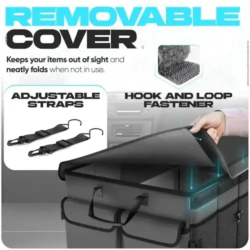 It's now very easy to organize your car trunk with the Fortem Car Trunk Organizer! This foldable and multi-compartment SUV organizer is designed for women and men and is an ideal solution for safely storing your car accessories. With its high-quality 600D Oxford fabric, non-slip base, fastening straps and soft cover, the Fortem Car Trunk Organizer meets all your needs thanks to its large volume of 85 liters. The robust box design is reinforced with hard base plates that support each side panel. Compared to other car organizers and storage products, it minimizes clutter with multiple side pockets and up to 3 compartments. Thanks to the non-slip strips and adjustable straps, it stays firmly in your trunk. You can store small items in tight mesh edges or pockets with lids. You can even connect 2 or more organizers together thanks to the interlocking buckles. The Fortem Trunk Organizer eliminates clutter in your trunk and makes room for your camping gear, groceries or office supplies. You can store your accessories (handbags, shoes, etc.) or your children's toys in an organized manner. Since the organizer can be folded down to a single compartment, it can be easily transported to the back seat, front seat or middle of your vehicle. The removable lid keeps your belongings safe and out of sight. Whether you have a large van, SUV or sedan, this car organizer is perfect for trunks of all sizes. Enjoy keeping your car trunk organized with the Fortem Car Trunk Organizer. Moreover, our product is covered by a full one-year warranty. The Fortem Car Trunk Organizer is not just a storage solution, but also an investment that makes your vehicle's interior more useful and comfortable. An organized trunk makes it easy to find your belongings and saves you time on your travels. Experience both practicality and elegance with the Fortem Car Trunk Organizer. This organizer not only organizes your belongings, but also contributes to the interior design of your vehicle. With its modern and stylish design, the Fortem Car Trunk Organizer creates an eye-catching look in your vehicle's trunk.