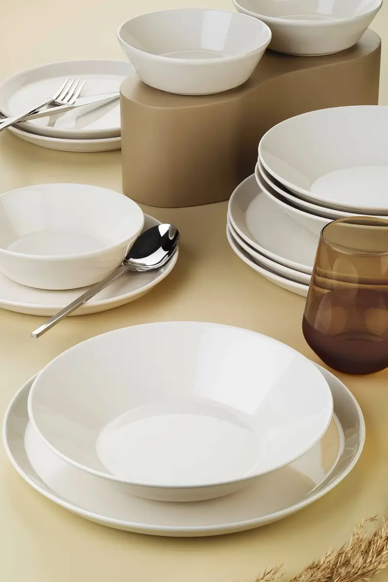 Bo'r rangi bilan har qanday dasturxonga mos keladigan bu ovqat to'plami zamonaviy va minimalist estetikaga ega. Bardoshli chinni materialdan tayyorlangan to'plam, idish yuvish mashinasida yuvish mumkin va mikroto'lqinli pechda foydalanish mumkin.