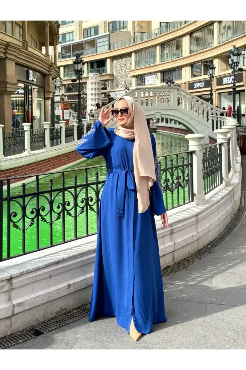 FRC001 Hidden Zippered Pocket Embroidered Belted Ferace-Saks has a special design that combines elegance and comfort. Prepared by considering the needs of the modern woman, this ferace is an ideal option for both daily use and special occasions. It offers a striking appearance by combining the nobility of saks color with elegant embroidery. The hidden zipper detail makes the ferace easy to use, while the stylish belt design emphasizes your waist and allows you to achieve a fitter appearance. Thanks to its high-quality fabric, it offers comfortable use all day long. The breathable structure of the fabric prevents sweating and provides comfort especially in hot weather. Its draped cut does not restrict your freedom of movement and adapts to every body. Embroideries add an elegant touch to the ferace, creating a modern and stylish look. The hidden zipper detail is located on the front of the ferace and allows it to be easily opened and closed. The belt detail has an important place in the design of the ferace. The belt used in the waist area adds a different dimension to the ferace and makes your body lines more defined. The belt is adjustable and removable as desired. The embroideries on the ferace are designed with a modern interpretation of traditional motifs. It is ideal for women who prioritize comfort in daily use. It is a piece that will complete your elegance at special occasions. It can be easily combined with different accessories and adapts to every style. It will be the indispensable of your wardrobe. With the combination of high-quality material, careful workmanship and modern design, it is a product that you can use for many years.