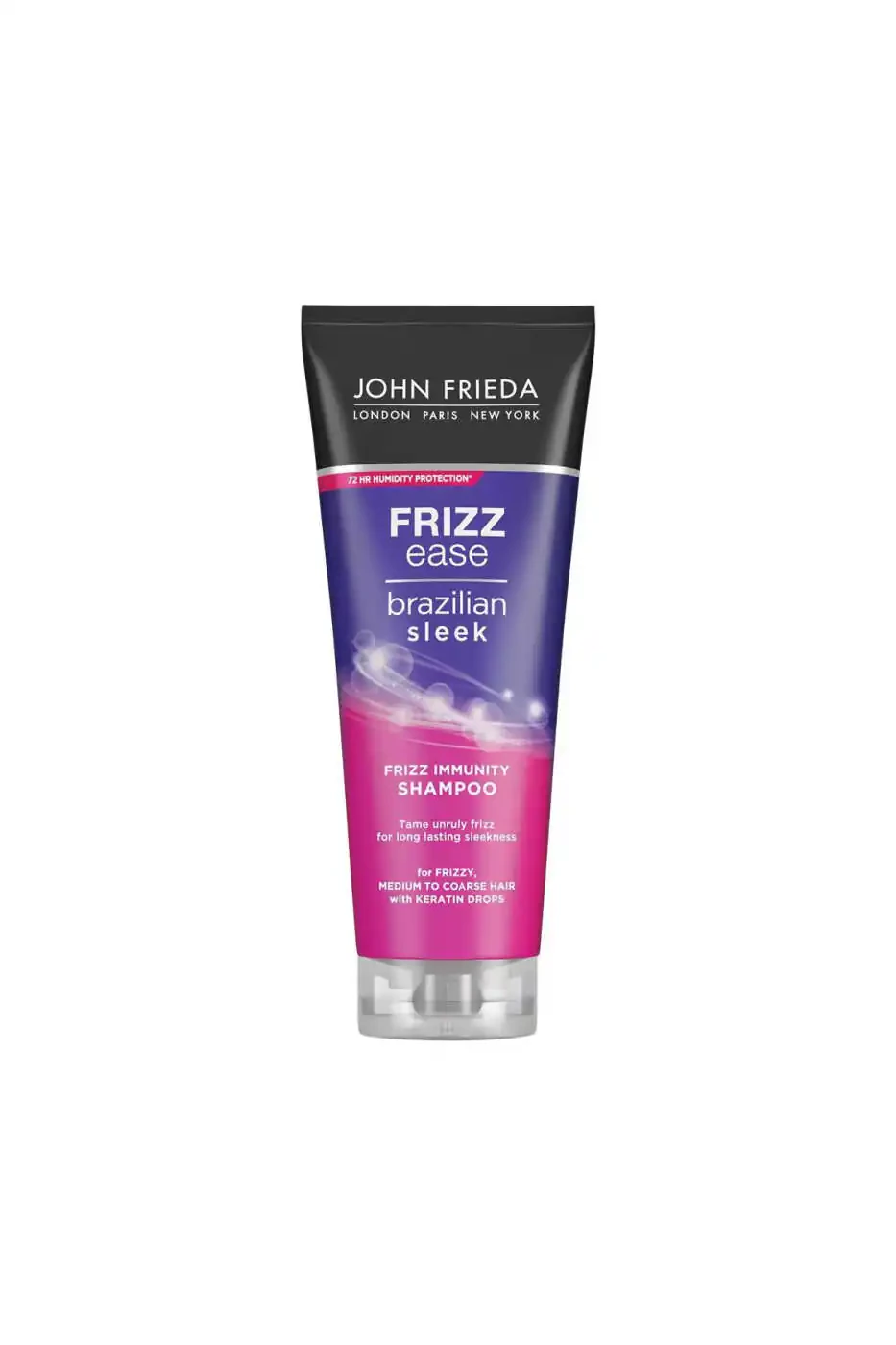 John Frieda Frizz Ease Brazilian Sleek Straightening Shampoo features a special formula that helps your hair look straighter, silkier, and shinier. Enriched with Brazilian keratin technology, this shampoo softens your hair, preventing frizz and flyaways. It also reveals your hair's natural shine, giving it a healthier and more vibrant look.