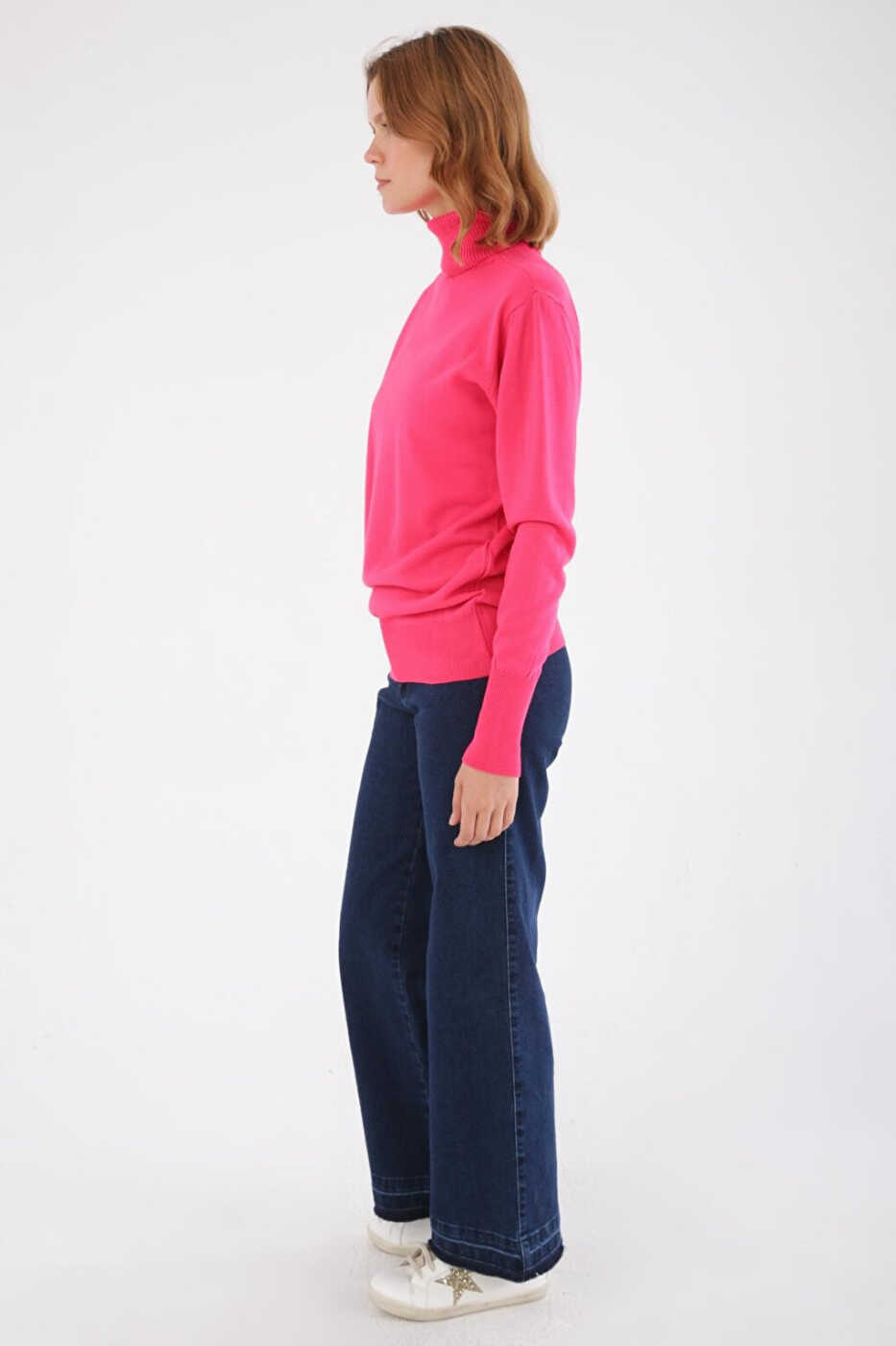 Combining style and comfort, the Fuchsia Fisherman Neck Short Knit Sweater will be an indispensable piece in your wardrobe. The sweater, which stands out with its vibrant fuchsia color, offers a modern style with its fisherman neck detail and short body. Made of soft and warm knit fabric, the sweater provides comfortable use throughout the day. This sweater, which can be easily combined with any type of bottom wear, will make you look stylish and chic in your daily life.
