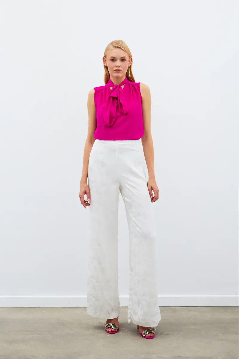 Zarif ve şık bir görünüm için ideal olan Fularlı Kolsuz Bluz, fuşya rengi ile dikkat çeken bir tasarım sunuyor. Kolsuz yapısı ile sıcak havalarda serin kalmanızı sağlarken, fular detayı ise şıklığınıza şıklık katıyor. Fular, bluz ile aynı kumaştan üretilmiş olup, isteğe göre bağlanabilir. Rahat ve nefes alan kumaşı ile günlük kullanım için ideal olan bu bluz, özel günlerinizde de tercih edebileceğiniz bir seçenek.