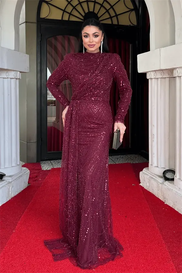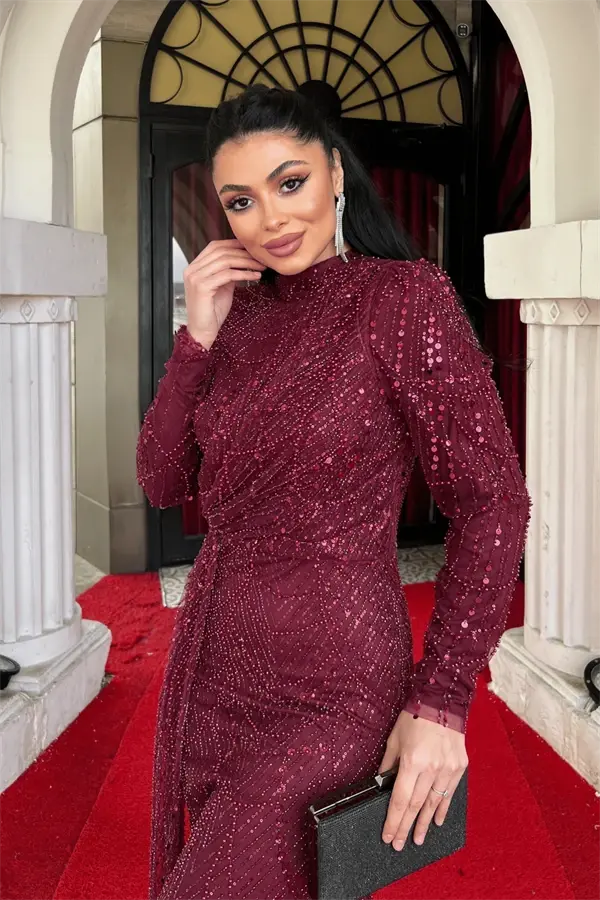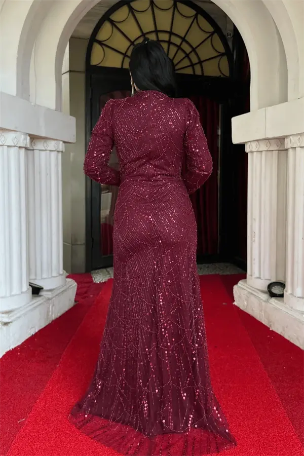 Full Boncuklu Tesettür Elbise - BORDOÜrün Uzunluğu: Göğüsten 155 cm. Arkası 165 cm. 'dir. (1-3 cm. arası değişiklik gösterebilir.)Kumaş Türü: Full Boncuklu KumaşÜrün Arkadan Fermuarlıdır.Üründe Göğüslük Mevcuttur.Üründe Astar Mevcuttur.Ürün Tam Kalıptır, Esnemesi Yoktur.Modelin Ölçüleri: Boy: 1.68 cm. , Kg: 52 , Göğüs: 85, Basen: 90