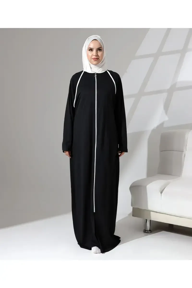 The Full Zipper Denim Daily Oversize Prayer Abaya, offered by Moda Berel, combines elegance and comfort, making it an ideal choice for your daily use and worship. This abaya is a candidate to be an indispensable part of your wardrobe with its modern design and functional features. You can easily put on and take off thanks to its full-length zipper closure, which offers freedom of movement. Its long and loose cut provides comfort throughout the day, while allowing you to pray without restricting your movements. Offering a timeless elegance with its basic silhouette that appeals to all age groups, this abaya promises a comfortable experience by adapting to seasonal conditions thanks to its long-sleeved design. Its beltless structure offers a simple and stylish look, while the crew neck adds a modern touch. It can be easily combined with its plain pattern and black color, and can be in harmony with all kinds of accessories. Its unlined construction increases lightness and allows you to feel comfortable throughout the day. When cared for in accordance with the 30-degree washing instructions, it stays like the first day for a long time. Polyester material increases its durability while offering easy maintenance. Its pocketless structure promises practical use, while the suggestion of drying on a hanger provides extra comfort. You can choose this abaya whether in daily life or on special occasions, and it prioritizes your elegance and comfort. Produced with Moda Berel quality, this product offers long-lasting use and satisfaction guarantee. It is an ideal choice for those who want to experience the elegance of black and the comfort of denim together. Order now and complete your style with this unique abaya. Remember, this product has a discounted price and limited stock. In addition, you can evaluate this product, which is offered by more than one seller, according to seller scores, delivery statuses and other criteria, and determine the option that suits you best. A free return option is also offered within 15 days, so you can shop with peace of mind.