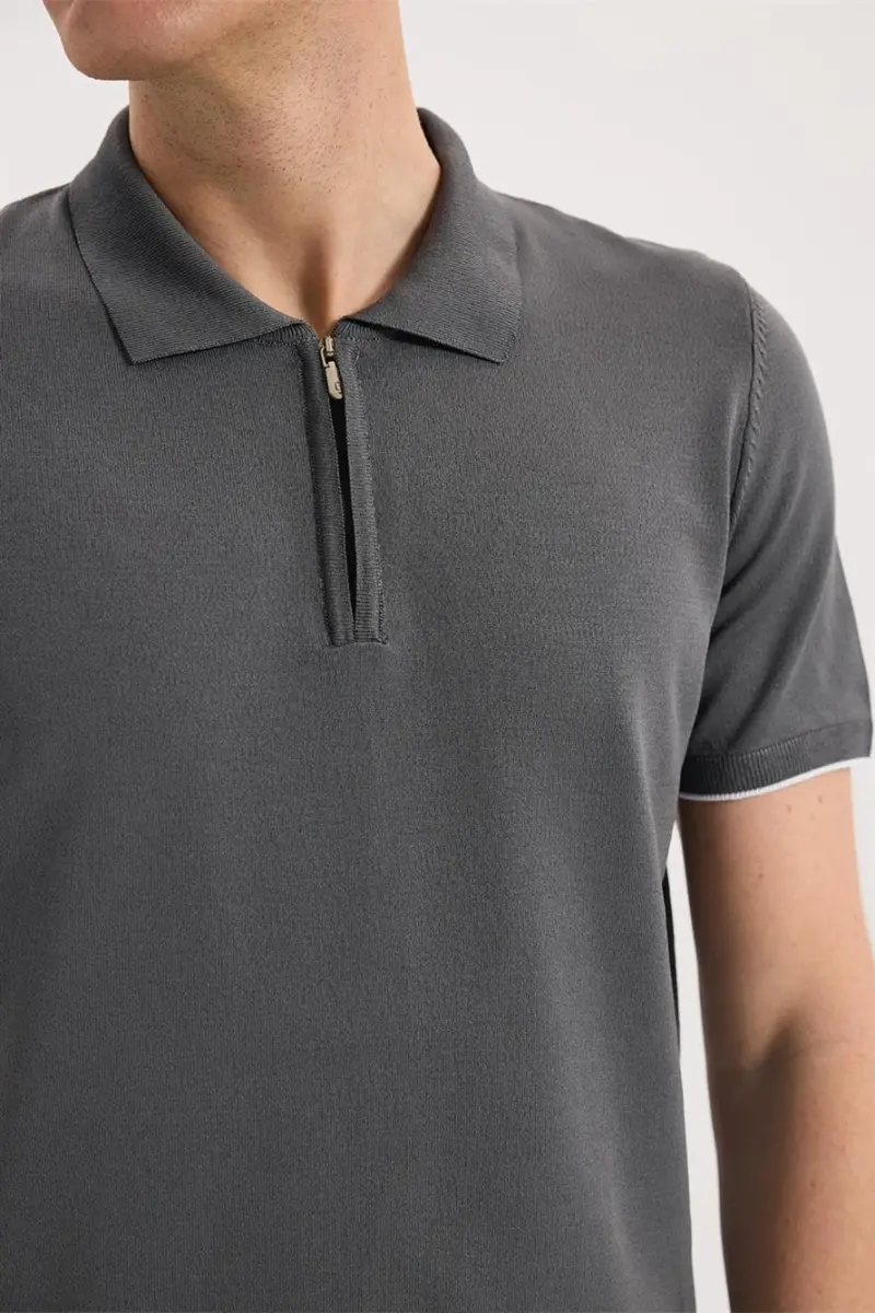 Füme Slim Fit Triko Fermualı Polo Yaka T-Shirt