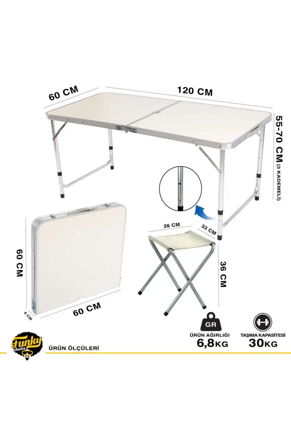 Funky Chairs Tabureli Katlanadigan Piknik Stoli To'plami - Kulrang