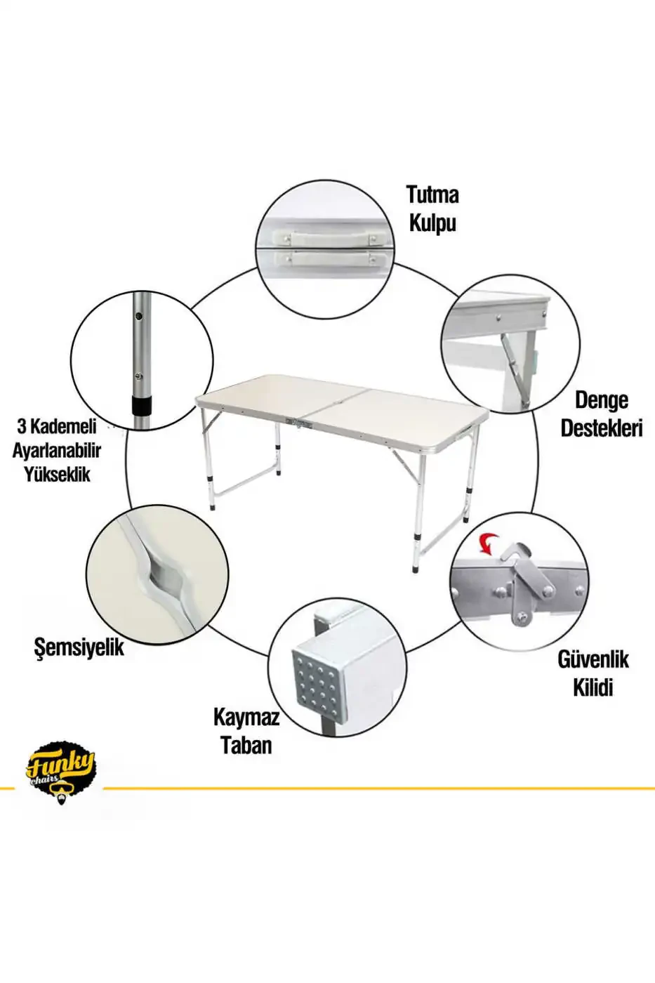 Sayohatlar, pikniklar, lager sayohatlari va bog'ingiz uchun mukammal tanlov bo'lgan Funky Chairs Tabureli Katlanadigan Piknik Stoli To'plami, amaliylik va nafislikni uyg'unlashtiradi. Kulrang rangdagi va har qanday muhitga mos keladigan to'plam 4 ta katlanadigan taburet va 1 ta katlanadigan stolni o'z ichiga oladi.
