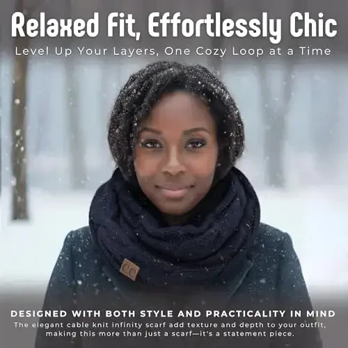 Funky Junque Cozy Ribbed Cable Knit Infinity Scarf Wrap - Mother's Day Gift - for Women
