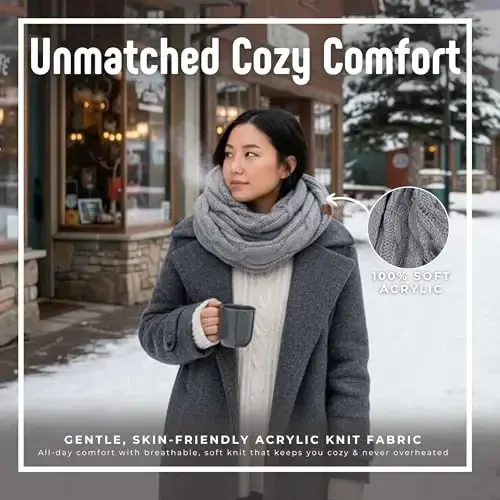 Funky Junque Cozy Ribbed Cable Knit Infinity Scarf Wrap ham uslubni, ham issiqlikni birga qidiradigan ayollar uchun mo'ljallangan. 100% akril materialdan tayyorlangan bo'lib, mashinada yuvish va osib quritish mumkin. Shu tufayli uni osongina tozalash va uzoq vaqt davomida ishlatish mumkin. Sharfning o'lchamlari taxminan 28.5 x 12 bo'lib, uni turli xil usullarda ishlatib, o'z uslubingizni aks ettirishingiz mumkin. Funky Junque'ning boshqa qishki aksessuarlari (ayniqsa, beretlar bilan) bilan mukammal mos keladi. Onalar kuni, tug'ilgan kun yoki boshqa maxsus kunlar uchun ajoyib sovg'a tanlovidir.