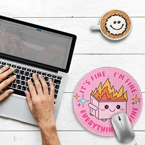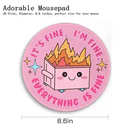 Need a little fun on your desk? This funny round mouse pad is a cute office decor for women. Featuring a dumpster on fire, this small mouse pad is sure to bring you a smile. With stitched edges and a non-slip rubber base, this personalized computer mouse pad is perfect for wireless mice. A great accessory for your desk.
