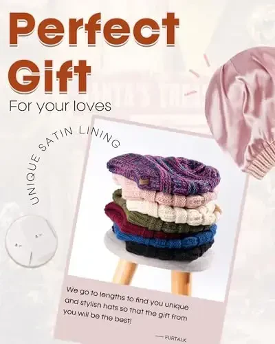 FURTALK Women's Satin Lined Knit Beanie is the perfect option to keep you stylish and keep your head warm in winter. This soft and comfortable beanie features a 100% acrylic cable knit outer layer and a satin lining to protect your hair. Designed to make your time outdoors in cold weather more enjoyable. It prevents your hair from getting electrified and worn out, helps it retain its natural moisture, while keeping it shiny and healthy. Thanks to its elastic structure, it fits comfortably to the head circumference of most women and young girls and offers all-day comfort. With different color options, you can easily find the one that suits your style and combine it with other pieces in your wardrobe. Whether for daily use or outdoor activities such as skiing, snowboarding, running, this beanie will always be an indispensable accessory to have with you. FURTALK Women's Satin Lined Knit Beanie is also a meaningful and useful gift option that you can give to your loved ones. It is a great way to make them happy on special occasions such as birthdays, Thanksgiving or Christmas. With its stylish design and warm-keeping structure, this beanie is a candidate to become an indispensable part of winter. Thanks to its high-quality material and careful workmanship, it offers a long-lasting use. If you do not want to compromise on your style while protecting yourself from the negative effects of cold weather, the FURTALK Women's Satin Lined Knit Beanie is for you. It allows you to make a difference in any environment with both its comfort and stylish appearance. Now you can enjoy being stylish even in cold weather. Spend the winter season warm and stylish with this beanie.