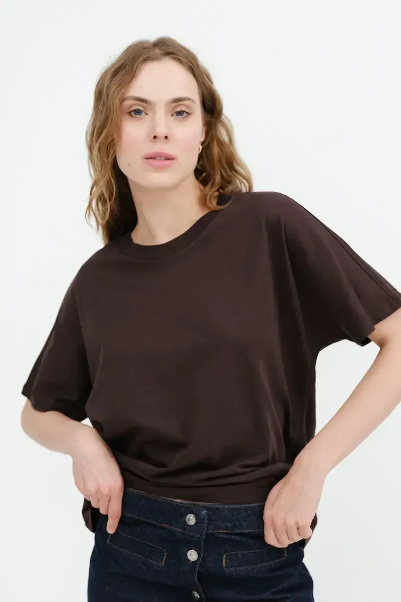Познакомьтесь с короткой рукавой Oversize Basic T-shirt P0730-J6J7Y4-Acı Kahve, которая станет незаменимой вещью в вашем гардеробе! Эта футболка сочетает в себе комфорт и стиль, поднимая ваш повседневный образ на новый уровень. Мягкая текстура хлопчатобумажной ткани нежно касается вашей кожи, а свободный крой позволяет вам свободно двигаться в течение дня. Теплый и естественный оттенок кофейного цвета легко сочетается с любыми комбинациями, добавляя изысканности вашему стилю. Независимо от того, хотите ли вы создать спортивный образ с джинсами или более шикарный стиль с юбками, эта футболка всегда будет сопровождать вас. Круглый вырез горловины предлагает современную и элегантную деталь, а короткие рукава помогают вам оставаться прохладными в жаркую погоду. Базовая модель означает, что вы можете легко комбинировать футболку с различными аксессуарами и верхней одеждой. Эта футболка - не просто одежда, а отражение вашего образа жизни. Эта футболка идеально подходит для повседневного использования и будет сопровождать вас на встречах с друзьями, во время шоппинга или отдыха дома. Благодаря удобному крою и стильному дизайну вы всегда будете хорошо выглядеть. Короткая рукава Oversize Basic T-shirt P0730-J6J7Y4-Acı Kahve - это не только незаменимая вещь в вашем гардеробе, но и претендент на то, чтобы стать незаменимой в вашей жизни. Дышащая структура хлопчатобумажной ткани устраняет проблему потоотделения в течение дня, а свободный крой обеспечивает удобство ношения, не стесняя ваше тело. Эта футболка - универсальная вещь, которую можно носить в любое время года. Вы можете носить ее отдельно летом или комбинировать с курткой или кардиганом весной и зимой. Кофейный цвет идеально сочетается с земляными тонами и позволяет создавать смелые комбинации с яркими цветами. Эта футболка обязательно должна быть в вашем гардеробе и является идеальным выбором для тех, кто ищет комфорт и стиль в одном лице. Позвольте своему стилю говорить с короткой рукавой Oversize Basic T-shirt P0730-J6J7Y4-Acı Kahve!