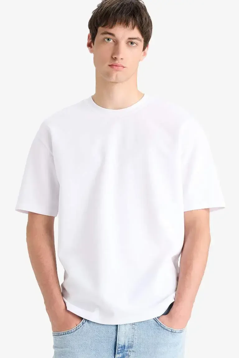 Футболка базового дизайна с коротким рукавом, круглым вырезом и свободным силуэтом из плотной ткани, белый