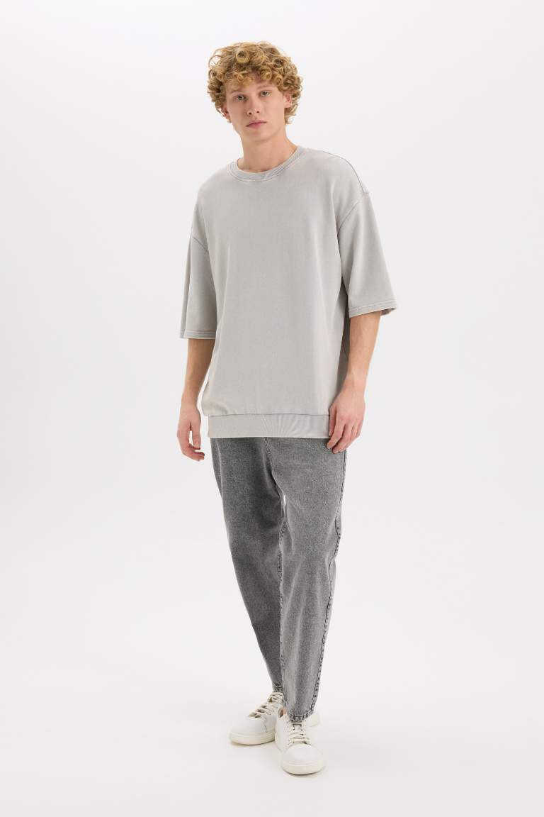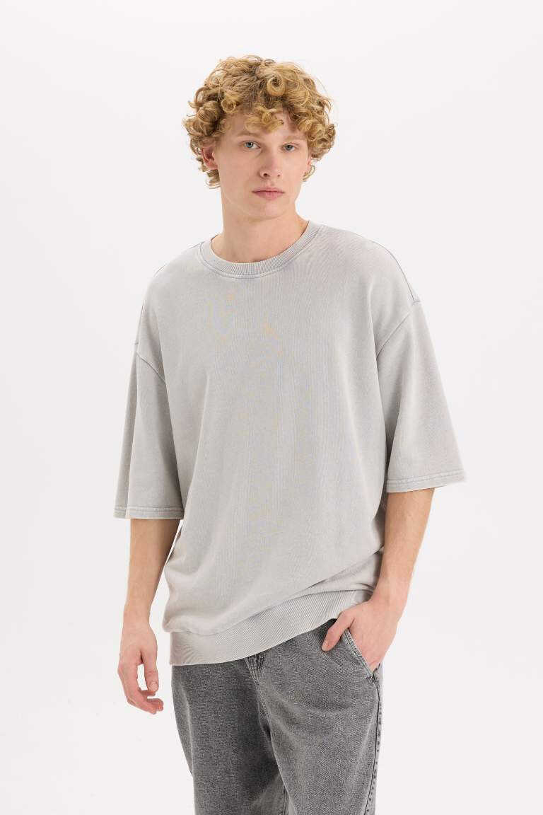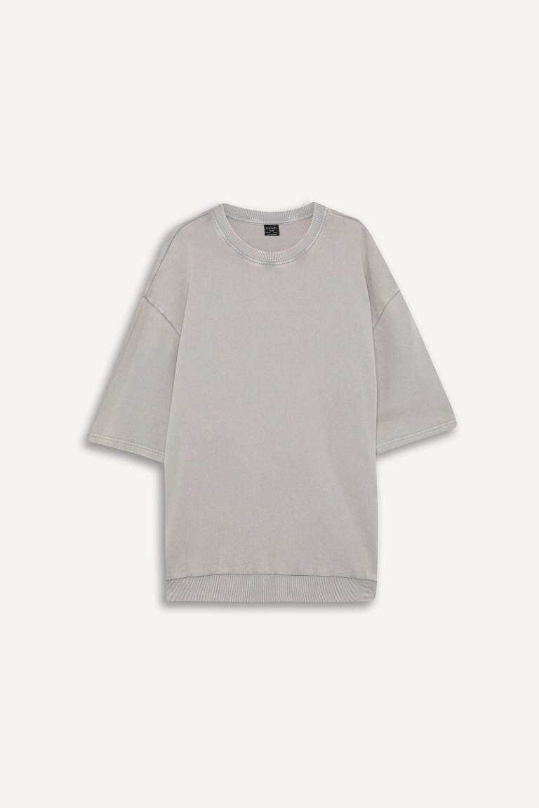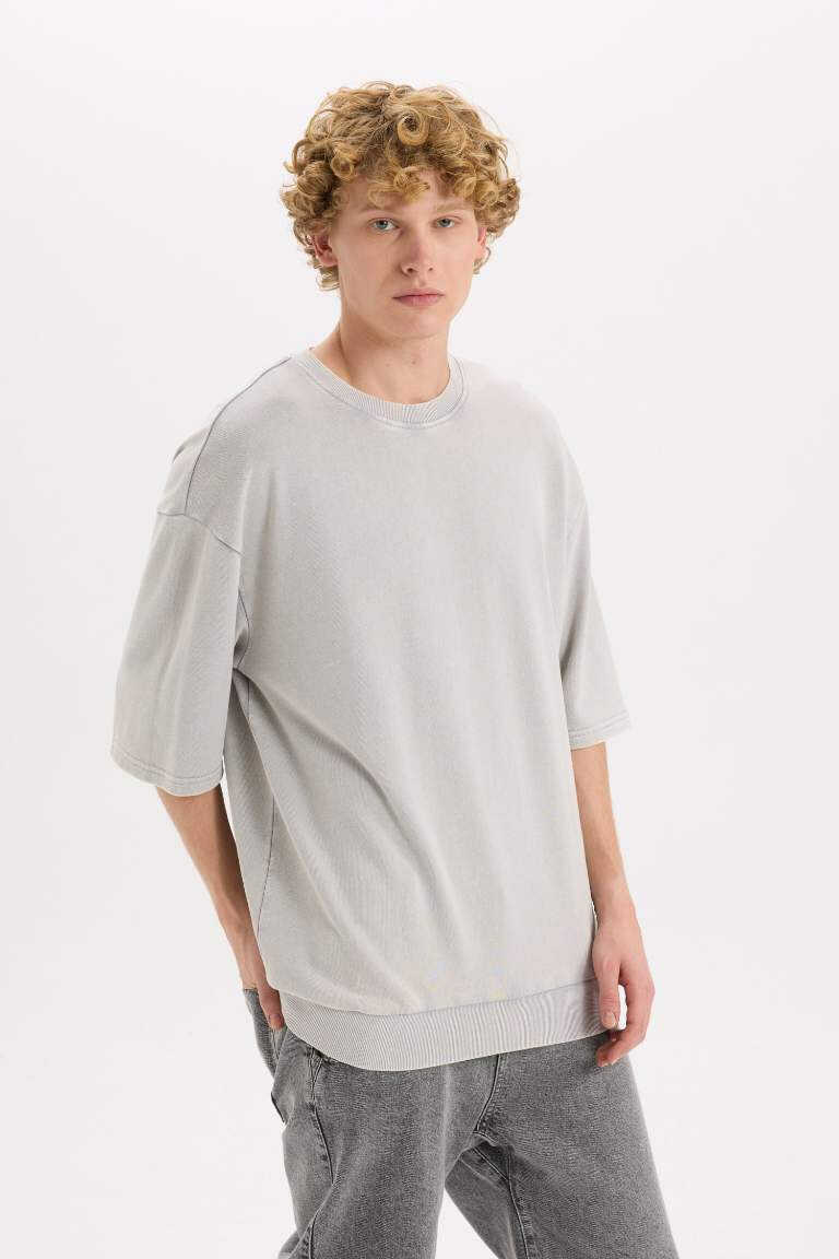 Футболка с круглым вырезом свободного кроя, выцветшая, с коротким рукавом, серого цвета, идеальный выбор для тех, кто ищет комфорт и стиль, станет незаменимой частью вашего гардероба.