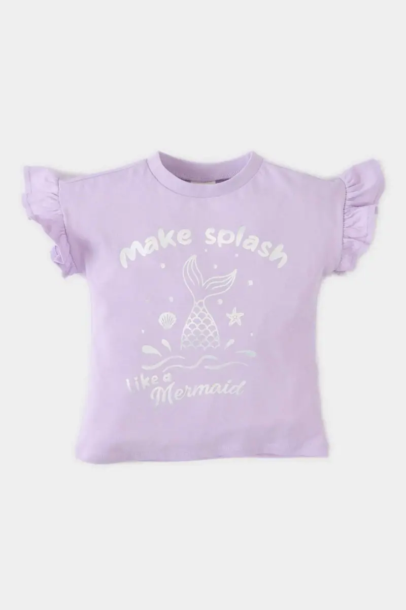 Характеристики продукта: * Круглый вырез горловины. * Короткие рукава. * С принтом. * Хлопковая ткань. * Фиолетовый цвет.