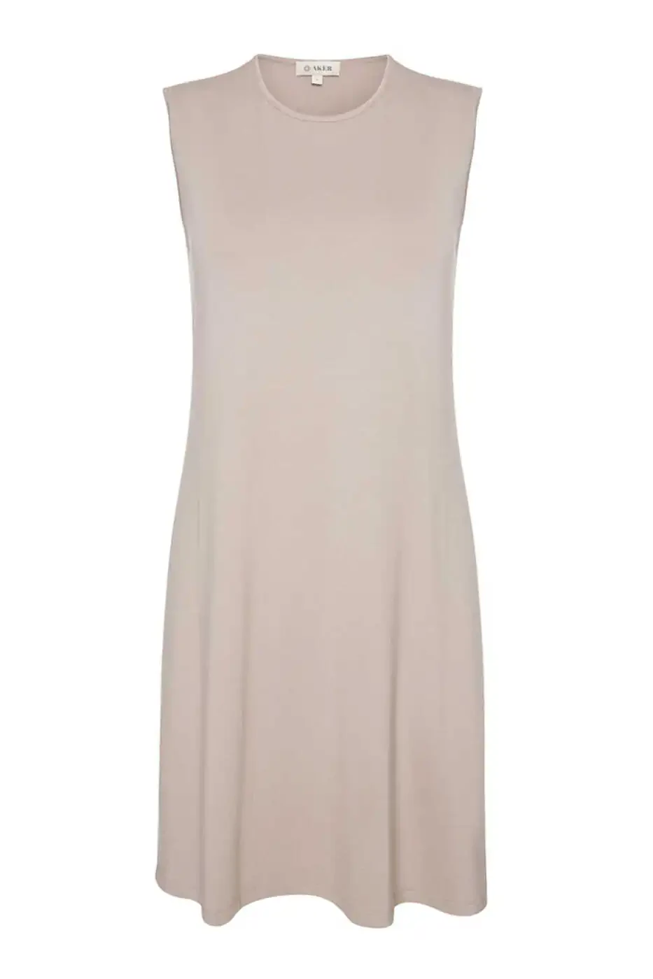 Футболка-туника без рукавов с круглым вырезом - бежевый