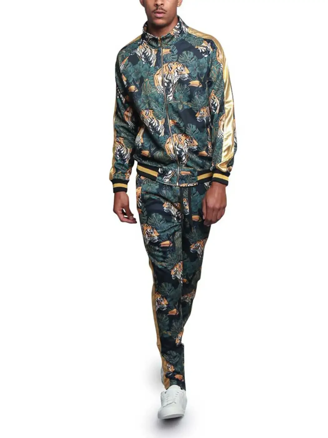Erkak sport kostyumi, qirollik gul, yo'lbars naqshli, fermuarli kurtka, sport shim, katta o'lchamli sport kostyumi, 5X sport kostyumi, G-Style USA, erkaklar kiyimi, sport kiyimi