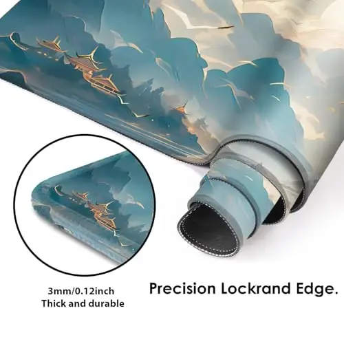 PREMIUM MATERIAL: Durable heat-resistant polyester fabric top on this gaming mouse pad and mouse mat, sublimation heat-transfer inks for a vivid long-lasting print and smooth mouse pad surface STABLE NON-SLIP BASE: Gaming mouse pad with non-slip rubber backing, scientific golden ratio thickness keeps the mouse pad from sliding as a long mousepad desk mat for keyboard and mouse LONG-LASTING BUILD: Waterproof coating and stitched edge resist wear, prolonged use without deformation and degumming, ideal extended gaming mouse pad large 31.5 x 11.8 in full desk mouse pad MULTI-PURPOSE SIZE: Large gaming mouse pad for desk 31.5 x 11.8 in works as desk mat for keyboard and mouse, computer keyboard pad mat for work, study, gaming mouse pad waterproof anti-slip GIFT-READY DESIGN: Stylish desk mouse pad large doubles as mousepad desk pad non slip rubber mice pads stitched, professional large mouse pad & PC mat for home office, ideal present for everyone Material: Large Mouse pad is made of a durable heat-resistant polyester fabric top. Very good material. Backed with a neoprene rubber non-slip backing, keeps the mouse pad from sliding.Ensure prolonged use without deformation and degumming Size: 31.5 x 11.8 x 0.12 inches (800mm x 300mm x 3mm); Weight: 450g.We did not make this large mouse pad too thick, we think too thick will cause the surface is very soft.This thickness is just right, thin and simple Durable: The design is permanent and it will not peel off or wipe off. Designed with sublimation heat-transfer inks to make for a long-lasting print.The Waterproof coating prevents damage from spilled drinks or other accidents Elegant: We thought it was not just a mouse pad to use, but a piece of art that could be decorated.This mouse pad is a beautiful unique gift, as a home or as a office gift and of course a respected present for everyone Guarantee:We believe that our large gaming mouse pad, no matter the quality or appearance, if there is any problem, please contact us