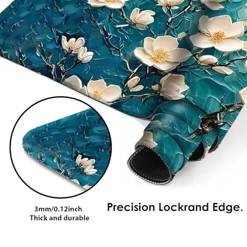 Galdas Gaming Mouse Pad XXL XL Large Long Extended Big Mousepad Non-Slip Rubber Keyboard Desk Pad with Stitched Edges for Laptop Home Office (31.5x11.8x0.08 Inch) … (Painting Flowers)