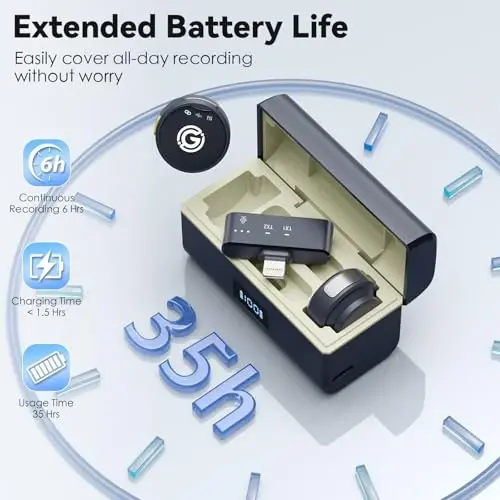 Achieve professional sound quality on your iPhone 14/13/12 devices and other Lightning-enabled devices with the Gamiity Wireless Lavalier Microphone! This stylish Sapphire Blue mini lapel microphone is the perfect combination of wireless freedom and superior audio performance. Whether you're recording video, live streaming, or recording an important interview, the Gamiity microphone is designed to deliver the best results every time. With superior Hi-Fi sound quality, advanced noise cancellation, and long battery life, this microphone allows you to express yourself in the best way possible without limiting your creativity. Thanks to its compact and lightweight design, you can easily carry it anywhere and start using it quickly. The Gamiity Wireless Lavalier Microphone is an indispensable accessory for your iPhone and other Lightning-enabled devices. Take your content to the next level with the professional sound quality offered by the Gamiity microphone. Whether you're podcasting, shooting YouTube videos, or creating TikTok content, this microphone always delivers the best audio experience. With the one-touch noise cancellation feature, you can easily eliminate unwanted background noise and achieve crystal-clear sound recordings. The 65dB signal-to-noise ratio guarantees excellent audio signals with minimal background noise. Thanks to its omnidirectional design, you can make professional-quality recordings in all kinds of scenarios, from street interviews to live broadcasts, from video recordings to inspiring moments. The Gamiity Wireless Lavalier Microphone has a special design that combines elegance and functionality. Weighing only 9 grams, this extremely lightweight miniature microphone can be easily attached to your clothes and used anywhere you want. Thanks to its unique magnetic clip and back clip, it can be easily attached to any garment. In addition, its necklace-style design reflects your personal style and meets all your recording needs. Without the need for complex setups, simply plug the receiver into your device. The Gamiity microphone connects automatically and is ready to use. It does not require Bluetooth or any application. Advanced 2.4 GHz digital transmission technology provides reliable wireless audio. With a 6-hour battery life, this microphone offers a total of up to 35 hours of use with the smart charging case. You can easily track the battery status via the LED display. You can also charge your device via RX for uninterrupted use. This feature is ideal for outdoor events or long-term live broadcasts.