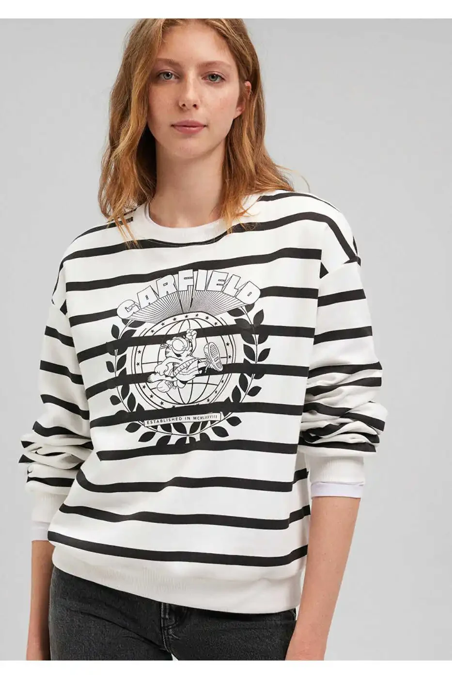 Kundalik uslubingizga qiziqarli bir teginish qo'shing! Garfield Bosma Qora Chiziqli Svitşot qulaylik va uslubni birlashtirgan ajoyib tanlov. Yumshoq va sifatli matodan tayyorlangan, u kun bo'yi qulaylik beradi, Garfildning yoqimli bosmasi esa uslubingizni namoyish etishga imkon beradi. Qora chiziqlar va oq bazasi bilan bu svitşot har qanday kiyimga osongina mos keladigan klassik ko'rinishga ega.