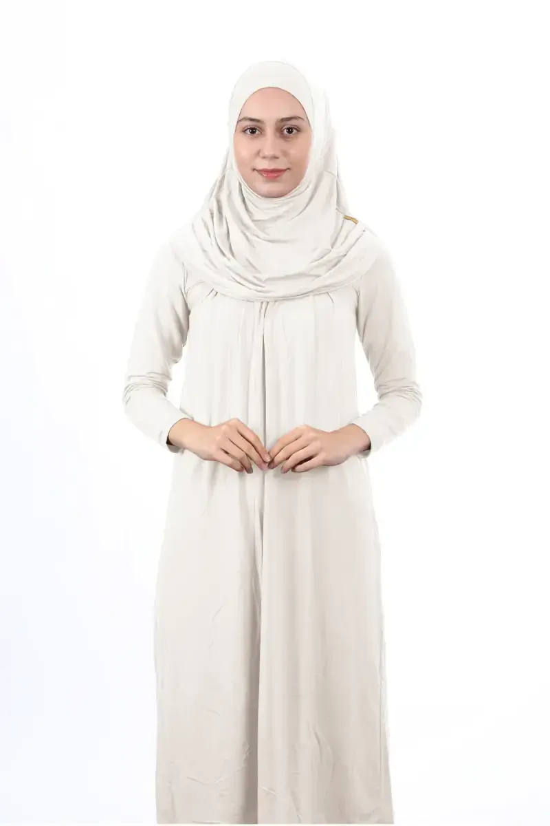 Garson Boy 12-15 Age Cream Self-Hijab One Piece Women's Prayer Dress is a stylish and practical option specially designed for young ladies. Offered with İhvan Online assurance, this prayer dress makes your daily prayers easier while allowing you to maintain your elegance. Cream color represents simplicity and peace, while its self-hijab design offers ease of use. Thanks to its one-piece design, it can be put on quickly and you can be ready for worship. Ideal for young girls aged 12-15, this dress offers comfortable use all day long thanks to its cotton jersey lycra fabric. Thanks to its non-ironing and non-wrinkling feature, it ensures that you always look well-groomed. Plain color and patternless fabric is an excellent choice for those who prioritize simplicity. This prayer dress can be used comfortably throughout the four seasons. The headscarf is slipped over the head and fixed to the dress with stitching from the shoulder, so it does not slip and does not cause discomfort during worship. The abundance of the chin part under the headscarf is taken by stitching with elastic, so the neck and hair are not visible during prayer. There is also no need to use a bonnet. The headscarf has a half-cape appearance from the front and back, covering the shoulders up to the chest, providing a modest look. Thanks to its loose fit, it does not reveal body lines and is suitable for use over clothing. The collar is a crew neck, does not disturb and offers comfort during worship. It is a standard size and has a yoke suitable for the 12-15 age range. This dress helps young people fulfill their religious duties while maintaining their elegance. It is an ideal choice for young girls who seek comfort and elegance while worshiping.