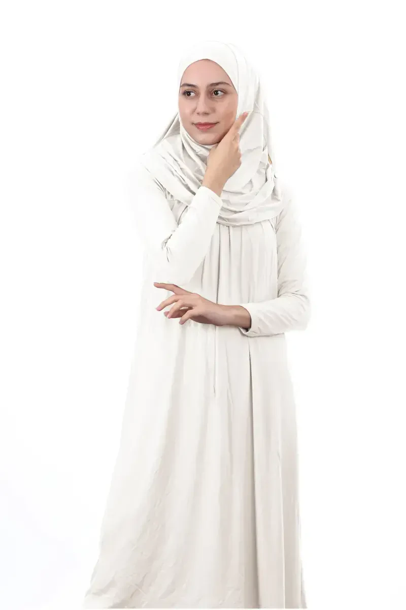 Garson Boy 12-15 Yosh Krem O'zi Boshörtülü Tek Bo'lak Ayollar Namoz Kiyimi, yosh xonimlar uchun maxsus ishlab chiqilgan, ham zamonaviy, ham amaliy tanlovdir. Ihvan Online kafolati bilan taqdim etilgan ushbu namoz libosi kundalik ibodatlaringizni osonlashtiradi, shu bilan birga nafosatingizdan voz kechishingizga yo'l qo'ymaydi. Krem rangi soddalik va xotirjamlikni ifodalasa, o'z-o'zidan bosh örtig'i dizayni foydalanish qulayligini ta'minlaydi. Bir bo'lak bo'lishi tufayli uni tezda kiyish va ibodatga tayyor bo'lish mumkin. 12-15 yoshdagi yosh qizlar uchun ideal bo'lgan ushbu ko'ylak paxta trikotaj likrali matosi tufayli kun bo'yi qulay foydalanishni ta'minlaydi. Dazmollashni talab qilmaydigan va ajinlanmaydigan xususiyati tufayli har doim ozoda ko'rinishingizga yordam beradi. Oddiy rang va naqshsiz mato, soddalikni birinchi o'ringa qo'yadiganlar uchun ajoyib tanlovdir. Ushbu namoz libosini to'rt fasl davomida bemalol ishlatish mumkin. Bosh kiyim boshga o'tkaziladi va elkadan libosga tikuv bilan mahkamlanadi, shuning uchun u sirg'alib ketmaydi va ibodat paytida noqulaylik tug'dirmaydi. Ro'molning ostidagi jag' qismi bo'shashmasligi uchun elastik bilan tikilgan, shuning uchun namoz paytida bo'yin va soch ko'rinmaydi. Bundan tashqari, suyakdan foydalanishga hojat yo'q. Ro'mol old va orqa tomondan yarim plash ko'rinishida bo'lib, yelkalarini ko'krakka qadar yopib, hijobga mos ko'rinish beradi. Keng kesimi tufayli tana chiziqlarini ko'rsatmaydi va kiyim ustidan kiyish uchun mos keladi. Yoqasi nol yoqadir, bezovta qilmaydi va ibodat paytida qulaylikni ta'minlaydi. Standart o'lchamli va 12-15 yoshga mos keladigan ro'molchali. Ushbu libos yoshlarning diniy burchlarini bajarishga yordam beradi, shu bilan birga ularning nafisligini saqlaydi. Ibadat paytida qulaylik va nafosat izlayotgan yosh qizlar uchun ideal tanlovdir.