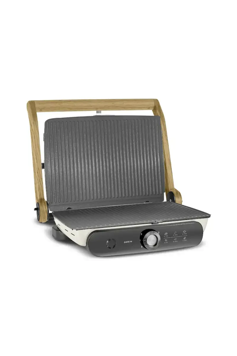Gastro Grill Pro 2400W Izgara Tost Makinesi Wood Craft Kahverengi - 6 Dilim Tost, Ayarlanabilir Termostat, Yapışmaz Plaka, Yağ Toplama Haznesi