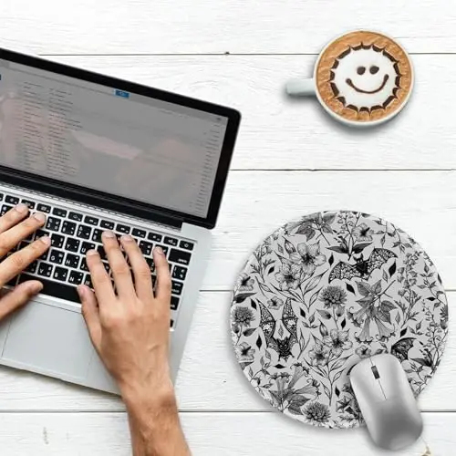 GOTHIC AESTHETIC DESIGN: Intricate vintage floral and bat pattern in a dark palette. This unique Goth artwork creates a statement of sophisticated, dark romance for your workspace Ultra-Smooth Surface: The high-quality textured Lycra fabric ensures smooth gliding and precise control. It ensures seamless compatibility with wired, wireless, optical, and mechanical mice. The anti-slip rubber base keeps it securely in place Easy to Clean: The coated surface resists spills and is easy to clean; simply wipe away any accidental beverage spills with a damp cloth or paper towel for quick and effortless maintenance Quality and Comfortable: The mouse pad features durable sewn edges that prevent fraying, ensuring long-lasting performance while maintaining a comfortable feel for extended use Compact and Portable: Measuring 8.6 inches in diameter, this lightweight, foldable mouse pad is easy to carry. Great for home, office, gaming, or travel. Makes a great gift for women, men, girls, teachers, family, friends, coworkers and bosses