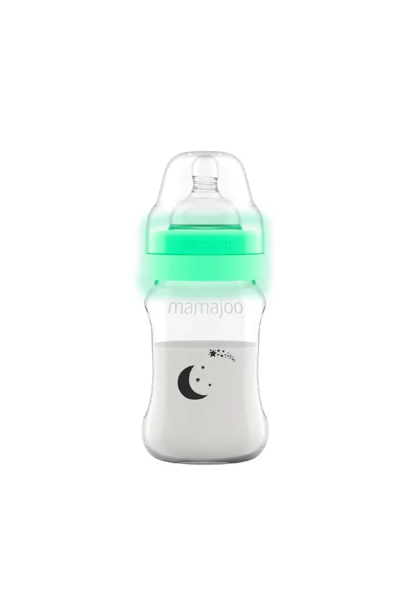 Mamajoo Gece & Gündüz Anti-kolik Biberon, 6 ay ve üzeri bebeklerin kullanımı için özel olarak tasarlanmış 270 ml kapasiteli, orta akışlı bir biberondur. Bebeklerin beslenme deneyimini iyileştirmek ve ebeveynlerin hayatını kolaylaştırmak amacıyla geliştirilen bu biberon, hem gündüz hem de gece kullanımına uygun özellikler sunar. Karanlıkta parlayan kapatma halkası sayesinde gece kolaylıkla bulunabilir, bu da gece beslenmelerini daha pratik hale getirir. Mamajoo Gece Biberonu, Türkiye'de, Avrupa ve ABD standartlarına uygun olarak üretilmiştir ve bebek sağlığına zararlı BPA ve Fitalat gibi maddeler içermez. ISO 9001:2015 belgeli, en son teknolojiye sahip tesislerde, yüksek kaliteli Polipropilen (PP) hammaddesinden üretilmiştir. Biberon emziği değiştirilerek daha küçük veya daha büyük bebekler için de kullanılabilir. Anti-kolik valf sistemi sayesinde, bebeklerin beslenme sırasında hava yutmasını engelleyerek gaz sancısını (kolik) azaltmaya yardımcı olur. Geniş tabanı sayesinde dengeli bir duruş sağlar ve minik ellerin kolayca tutabileceği ergonomik kavislere sahiptir. Biberon üzerindeki ölçek işaretleri, bebeğin ne kadar beslendiğinin kolayca takip edilmesini sağlar. Anne göğsüne benzer formda tasarlanan biberon emziği, helezonları sayesinde anne memesi gibi esneyerek bebeğin doğal emme hissini destekler. Geniş ağzı sayesinde kolayca doldurulup temizlenebilir. Tatsız ve kokusuz emziği sayesinde emzirme ve biberonla beslemeyi birleştirmek kolaylaşır. Mamajoo Gece & Gündüz Biberon, bebeklerin sağlıklı ve konforlu bir şekilde beslenmelerine yardımcı olurken, ebeveynlere de pratik bir çözüm sunar.