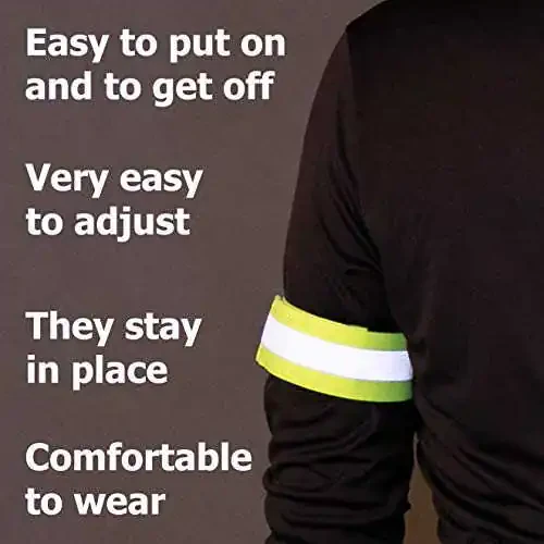 10-pack multi-bulk pack set: Need more safety reflective bands for your team? HiVisible reflective bands for night walking easily fit over any clothing; great for bulk and wholesale size orders; keep them at hand in case of an emergency Safe and visible reflective running gear: 360-degree high visibility running reflective gear; visible from 800 feet in the dark, early morning, and evening, in all weather conditions Multi-use reflective bands: The reflectors for walking at night are ideal for use as reflective wristbands for walkers, reflective arm bands for night walking, ankle bands, belt bike pant leg straps, clips, cuffs, or holders; versatile reflective gear for safety Versatile 10 reflective bands: Perfect for night walking, running, cycling; can be used as leg straps, pant clips, and more for added visibility Easy to put on and take off: Fully adjustable, lightweight, and breathable reflective bands for comfort and convenience Comfortable to wear: Reflector bands stay securely in place over any clothing, including shirts, jerseys, jackets, joggers, backpacks, and rucksacks HiVisible running reflective gear: Outstanding customer service for HiVisible’s hi-vis reflective bands for women and men, ensuring your satisfaction with every purchase