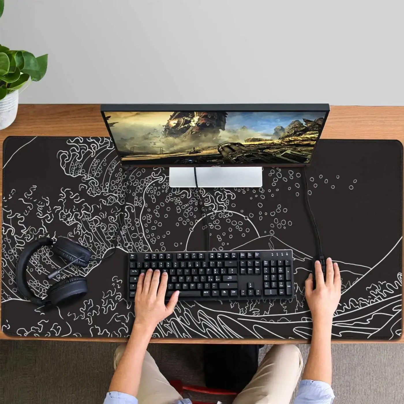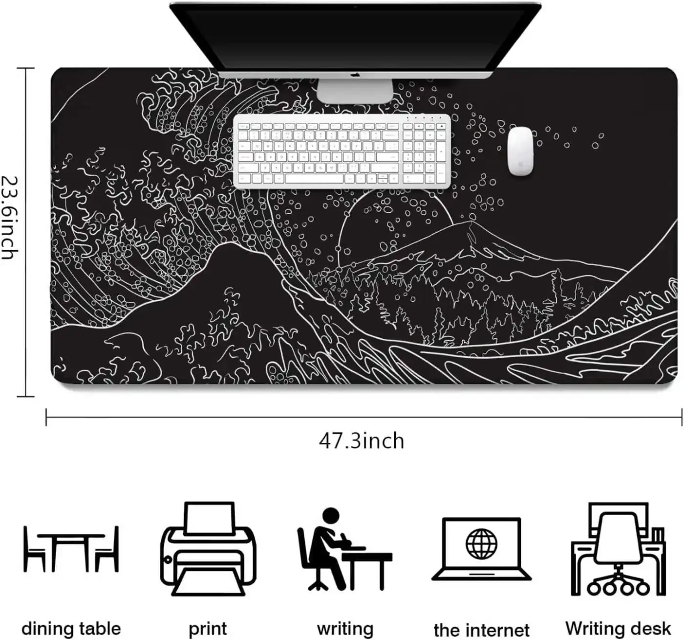 Oyuncular ve ev ofis kullanıcıları için mükemmel olan Japanese Waves denizyolu mouse pad, geniş boyutu ve kaymaz kauçuk tabanıyla oyun deneyiminizi veya günlük bilgisayar kullanma alışkanlığınızı yükseltecektir. XXXXL boyutu, klavyeniz ve fareniz için bolca alan sağlayarak masa düzeninizi optimize etmenize yardımcı olur. Dokuma yüzeyi, hassas fare hareketleri için mükemmel bir sürtünme sağlar, bu da oyunlarda, grafik tasarımda ve diğer hassas görevlerde üstün doğruluk ve kontrol sağlar. Dikişli kenarlar, aşınmaya ve yırtılmaya karşı dayanıklılık sağlar ve mouse pad'in şeklini uzun süre korumasını sağlar. Kaymaz kauçuk taban, masaüstünüzde sağlam bir şekilde sabitlenmesini sağlar, böylece hareket etmez veya kaymaz. Dayanıklı ve şık tasarım, her masaüstüne modern bir görünüm katar.