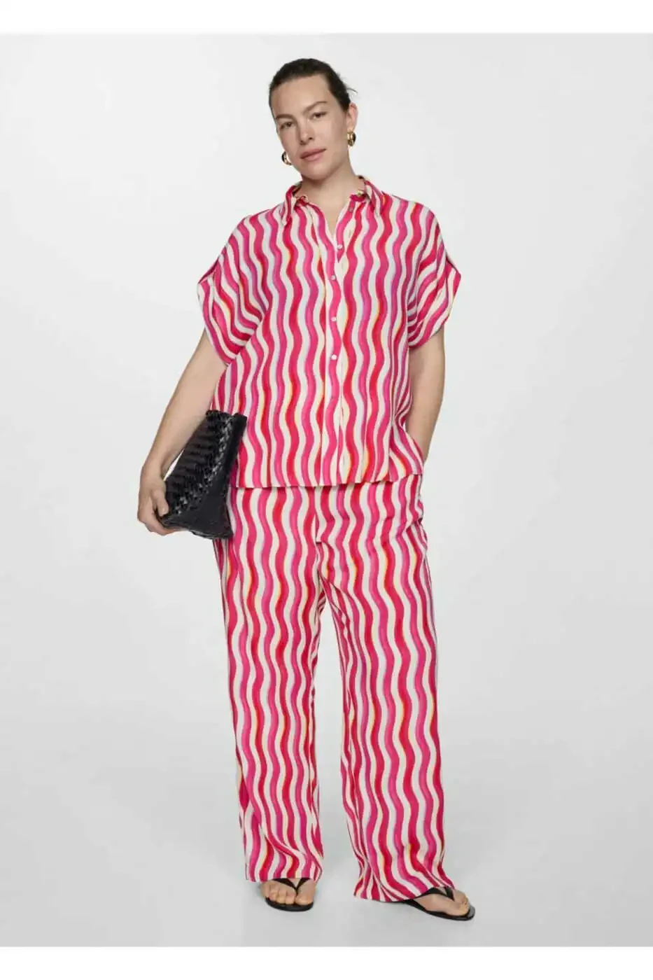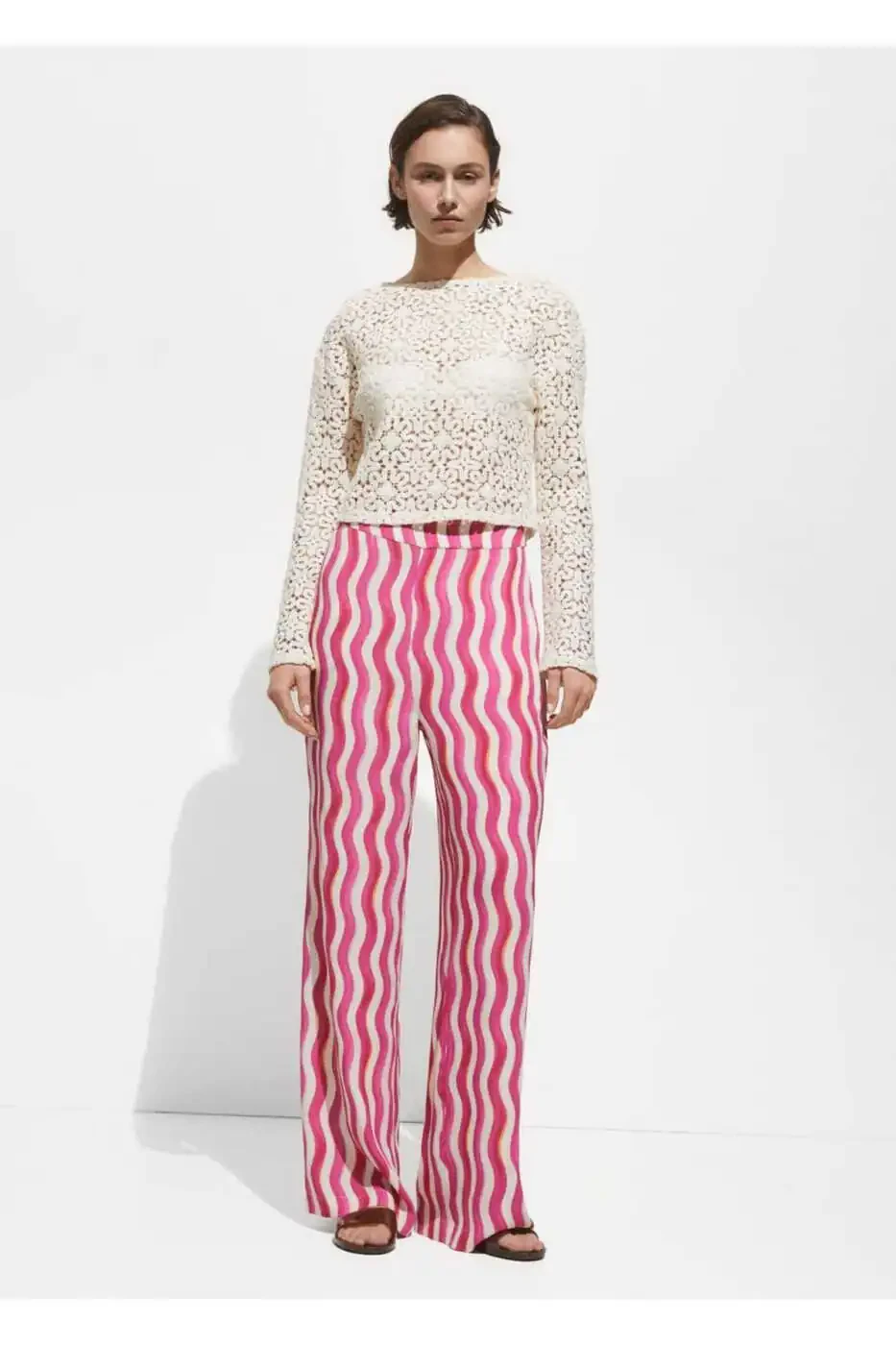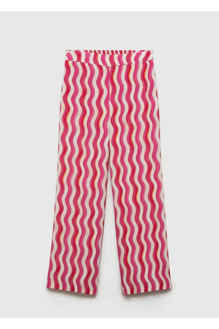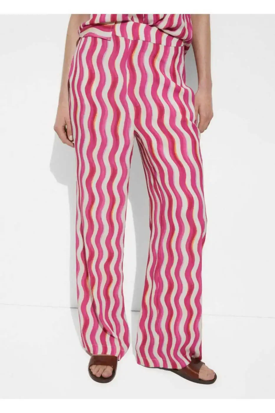 wideleg desenli pantolon, dökümlü kumaş, uzun model, yan cepli, elastik bel, kapamasız, total look, büyük beden, festival sezonu