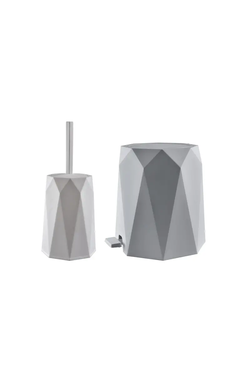 Geo 2'li Banyo Seti (Plastik 5 lt Çöp Kovası Ve Tuvalet Fırçası Taş Rengi)-GRİ