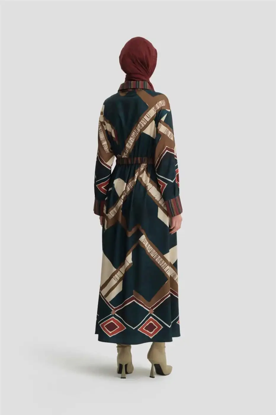 Geometric Pattern Dress, 24k9911, Petrol Dress, Armine, Stylish Dress, Sophisticated Dress