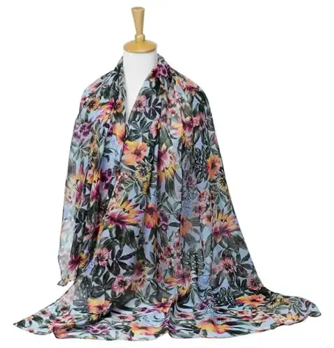 GERINLY Lightweight Scarves Fashion Flowers Print Women Cotton Wrap Scarf Head Shawl Fall Gift - bu ayollar uchun zamonaviy va ko'p qirrali aksessuardir. Engil paxta matosi tufayli u qulay foydalanishni taklif etadi va turli uslublarda birlashtirilishi mumkin. Ham kundalik foydalanish, ham maxsus tadbirlar uchun javob beradi. Bu ajoyib sovg'a variantidir.