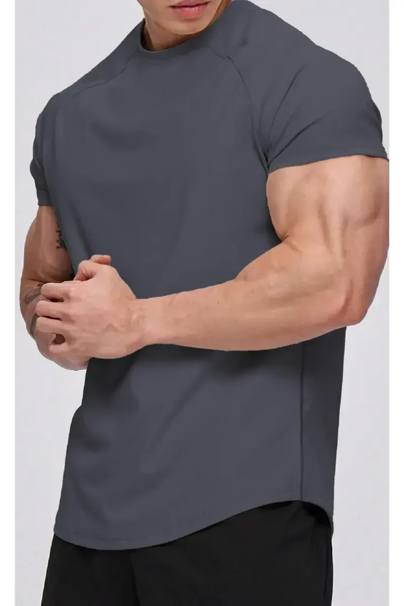 Men's t-shirt, sports t-shirt, running t-shirt, raglan sleeve, oval cut, combed cotton t-shirt, breathable, sweat-wicking, everyday t-shirt, smoke gray t-shirt