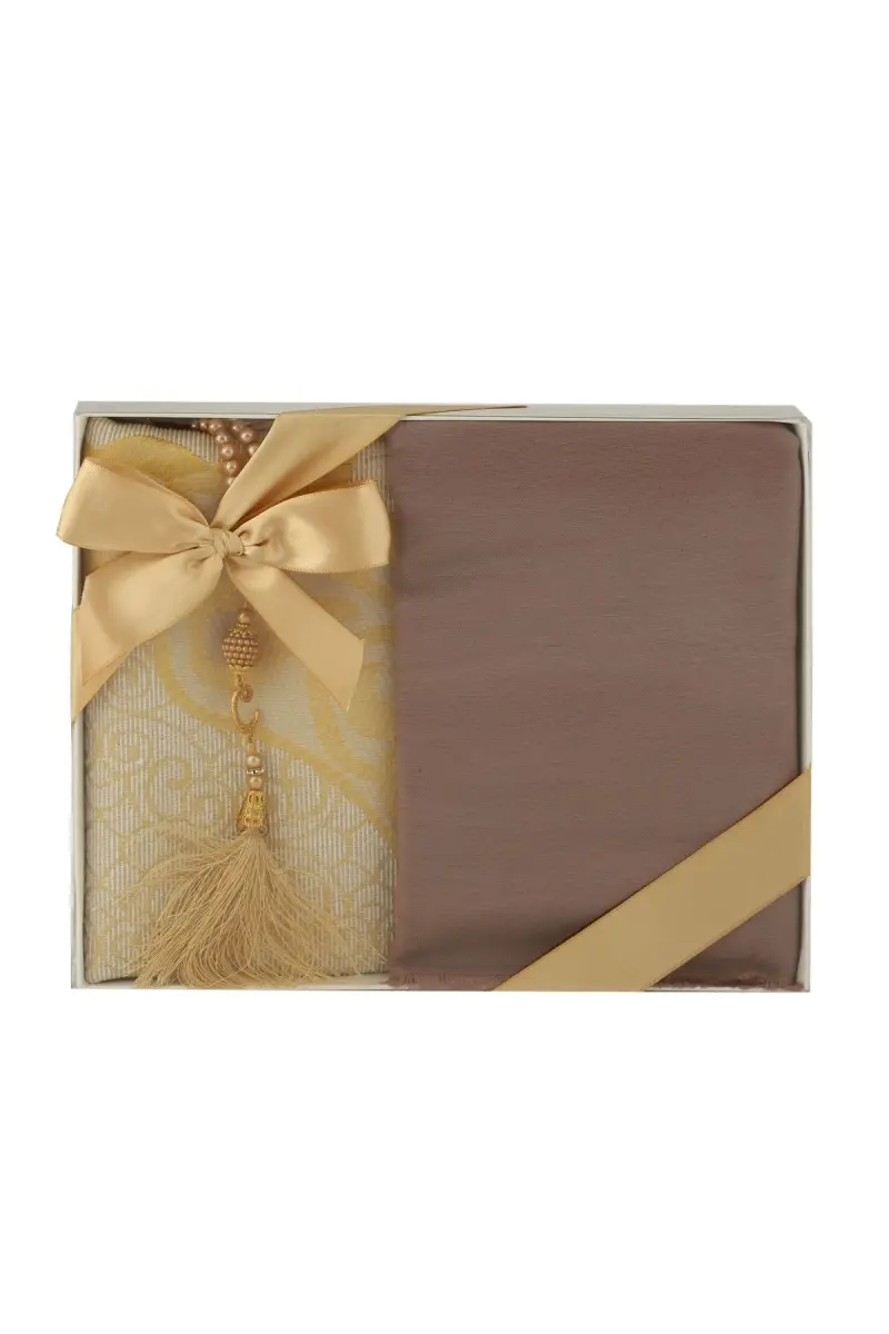 Gift Prayer Rug Shawl Rosary Set-GOLD is a unique set that will crown your special occasions and allow you to present your loved ones with a gift of high spiritual value. This elegant set includes a quality prayer rug, a stylish shawl, and a carefully designed rosary. Adorned with the nobility of the gold color, these products are both useful and visually striking. Whether you buy it for yourself or gift it to your loved ones, this set will always carry a special meaning.Product DescriptionGift Prayer Rug Shawl Rosary Set-GOLD is an aesthetic and useful product carefully prepared for those who value spiritual values. Designed with the elegance of the gold color, this set is the most beautiful way to present your loved ones with an unforgettable gift on special occasions. Each piece in the set is made of high-quality materials and offers long-lasting use. The prayer rug is of ideal size and soft texture to allow you to perform your prayers in peace. The shawl is a stylish accessory that will complement your outfits both in daily use and on special occasions. The rosary will make your dhikr more enjoyable with its elegant design and smooth beads. This set is not just a gift, but also an expression of meaning and value. It is a perfect choice to add a spiritual touch to your loved ones on special occasions such as weddings, engagements, birthdays, Mawlid al-Nabi, and Eid al-Fitr. The gold color of the set symbolizes wealth and abundance, while each product inside emphasizes the importance of worship and spirituality. The quality, usability, and aesthetic appearance of the product distinguish it from other gifts, giving the recipient an unforgettable experience. Don't miss this set, which will be the most beautiful reflection of the value you give to your loved ones.Product Features* High-quality prayer rug (Ideal size and soft texture for prayer)* Stylish design shawl (Complementary to outfits for daily use and special occasions)* Elegant rosary (Smooth beaded and aesthetically designed)* Gold color details (Symbol of wealth and abundance)* Special gift box (Stylish and practical packaging)* Long-lasting use (Durable materials)* High spiritual value (Meaningful and special gift option)* Various uses (Worship, accessory, gift)* Lightweight and portable (Easily portable and storable)* Easy to clean (Practical use)Additional InformationOur products are carefully packaged and shipped. You can send it directly to your loved ones as a gift. All of our products are manufactured in accordance with high-quality standards. Please do not hesitate to contact us if you have any questions or requests. Your satisfaction is important to us.