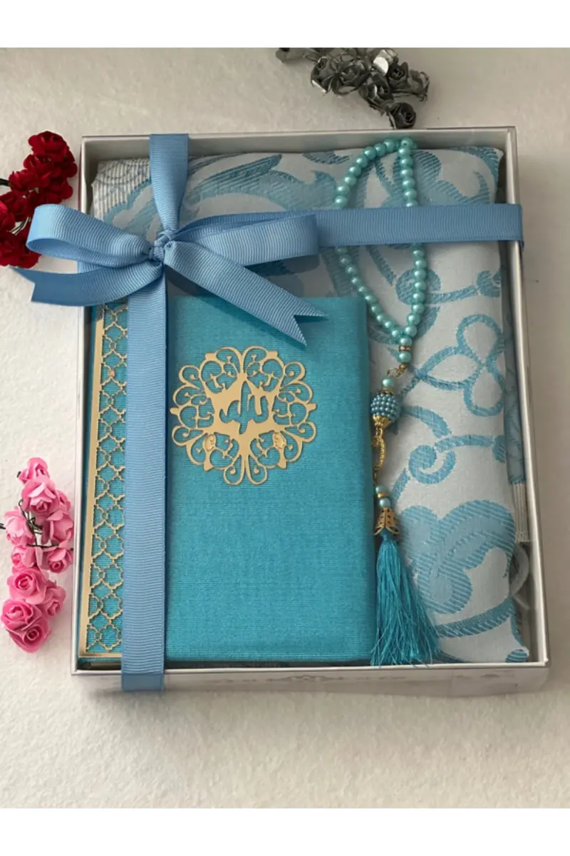 Gift Prayer Rug Set 3 Pieces Water Green Color - Water green is a special product that stands out with its high-quality fabric and elegant design. The set includes a prayer rug, rosary, and prayer rug pouch. The water green color creates a peaceful and calm atmosphere, while the stylish details add an aesthetic look to the set. The prayer rug is specially designed to make your prayer rituals more enjoyable. It offers comfortable use thanks to its soft texture and ideal dimensions. The rosary has 99 beads, is made of high-quality material, and has a pleasant touch. The prayer rug pouch allows you to safely store and carry your prayer rug. This set is both a meaningful gift option for yourself and a valuable gift you can give to your loved ones. It is an ideal choice to make your loved ones happy on special occasions, holidays, or at any time. With the refreshing effect of the water green color, it helps you to perform your prayers in peace.Product DescriptionGift Prayer Rug Set is an elegant and useful set designed to make your prayers more meaningful and special. While the soothing tones of water green add tranquility to the atmosphere of your home or mosque, its high-quality material and careful workmanship offer long-lasting use. This special set is not only a means of worship but also a gift option with high spiritual value that you can give to your loved ones. The prayer rug included in the set is specially woven to offer you comfort and convenience while praying. Thanks to its soft texture and ideal size, it can be easily used anywhere. The rosary has 99 beads, is made of high-quality beads, and makes your dhikr more enjoyable. It can be used easily thanks to its hand-fitting structure and accompanies you on your spiritual journey. The prayer rug pouch, as a complement to the set, protects your prayer rug from dust and dirt and can also be used as a stylish carrying case. The freshness of the water green color and the elegant details of the set transform it from being just a means of worship into an accessory that contributes to the decoration of your home or mosque. This set is a perfect option for a wedding gift, mawlid gift, umrah gift, or just to make a spiritual surprise to your loved ones. You can choose this special prayer rug set to make your prayers more special and meaningful, to present a valuable gift to your loved ones, or to add peace to the atmosphere of your home. Every detail of this set is carefully considered and will meet your expectations with its functionality and aesthetic appearance and will accompany you for many years. While helping you to focus on your prayers with the calming effect of the water green color, it offers long-lasting use thanks to its high-quality material and workmanship.Product Features* Made of high quality fabric.* Set includes: Prayer rug, rosary (99 beads), prayer rug pouch.* Color: Water green.* The prayer rug size is ideal, providing comfortable use.* The rosary is made of high-quality material and has a pleasant touch.* The prayer rug pouch protects the prayer rug and makes it easy to carry.* Suitable for gifting.* Has elegant design details.* Durable materials are used for long-lasting use.* Makes your prayer rituals more enjoyable.* The water green color creates a peaceful atmosphere.* A spiritual gift option with high value.* Easy to clean and maintain.* Lightweight and portable.Additional InformationIt is recommended to wash the product by hand or on a delicate program for long life. Do not use bleach. Iron at low temperature. You can wash the prayer rug pouch in the same way. You can clean the rosary by wiping it with a damp cloth. When you are not using the product, you can protect it from dust and dirt by storing it in a prayer rug pouch.