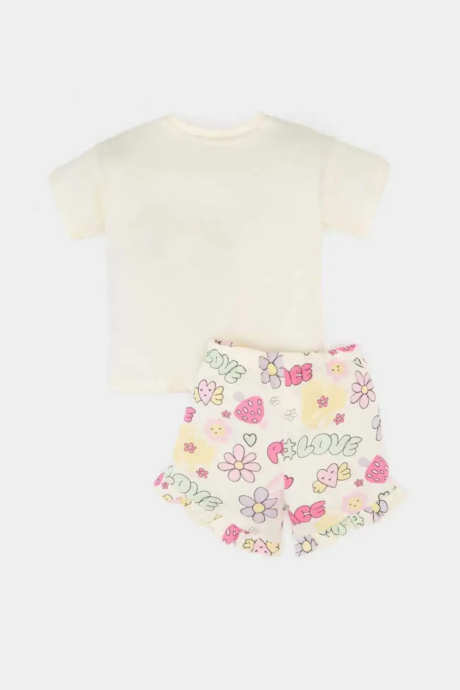 The perfect summer outfit for your lovely daughter! The DeFacto Girls' 2-Piece Set Printed Short-Sleeved T-Shirt with Elastic Waist Patterned Shorts E6441a525sm, made with DeFacto quality, offers both comfort and style. Made from 100% cotton, this soft set is designed to fit your little one perfectly. With its short-sleeved t-shirt and comfortable elastic-waisted patterned shorts, your daughter will be able to move freely all day long. With various design options, you can easily find the model that best suits your daughter's style. Orders of more than 10 items may be canceled by Trendyol, so we recommend ordering only the quantity you need. You can shop with peace of mind thanks to the 15-day free return option. Don't miss this great set on sale at a campaign price!